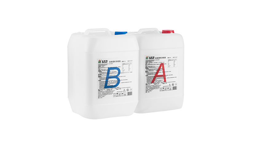 結(jié)構(gòu)及組成:血液透析濃縮液包括A濃縮液和B濃縮液。A濃縮液成分:氯化鈉、氯化鎂、氯化鉀、氯化鈣、冰醋酸;B濃縮液成分:碳酸氫鈉。