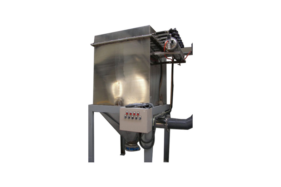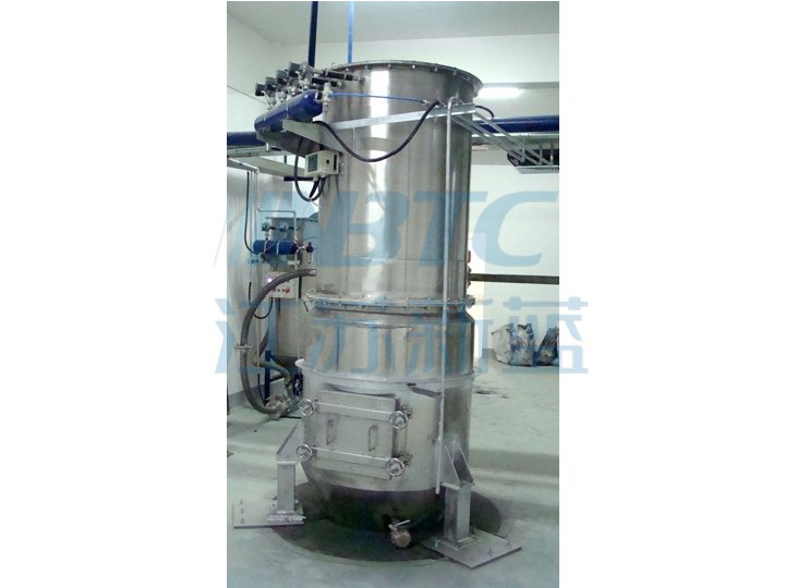 含量塵氣體由除塵器進(jìn)風(fēng)口進(jìn)入下箱體,含塵氣體在通過(guò)過(guò)濾袋進(jìn)入上箱體過(guò)程中,粉塵被吸附在濾袋上,而氣體則穿過(guò)濾袋經(jīng)文氏管進(jìn)入上箱體,從出風(fēng)口排出。含塵氣體通過(guò)濾袋的凈化過(guò)程,附著時(shí)間的增加而積附在濾袋上的粉塵越來(lái)越多,增加了濾袋的阻力,此時(shí)脈沖閥由控制儀發(fā)出指令,按順序觸發(fā)開(kāi)啟,氣包內(nèi)的壓縮空氣瞬時(shí)地經(jīng)脈沖閥至噴吹管的各孔噴出,再經(jīng)文氏管?chē)娚涞礁鲗?duì)應(yīng)的濾袋內(nèi)。濾袋在氣流間反向作用下急劇膨脹,使積附在濾袋表面的粉塵被周期性的脈沖噴吹清除使凈化的氣體正常通過(guò),保證除塵系統(tǒng)運(yùn)行。