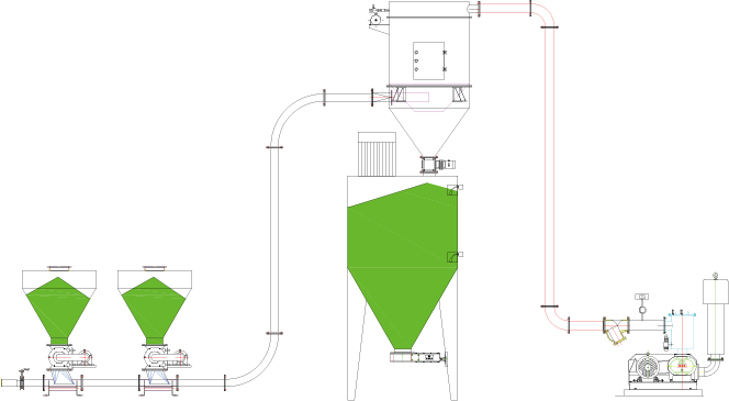 該輸送系統(tǒng)氣源形式為羅茨風機或水環(huán)真空泵,氣源壓力20~50KPa。